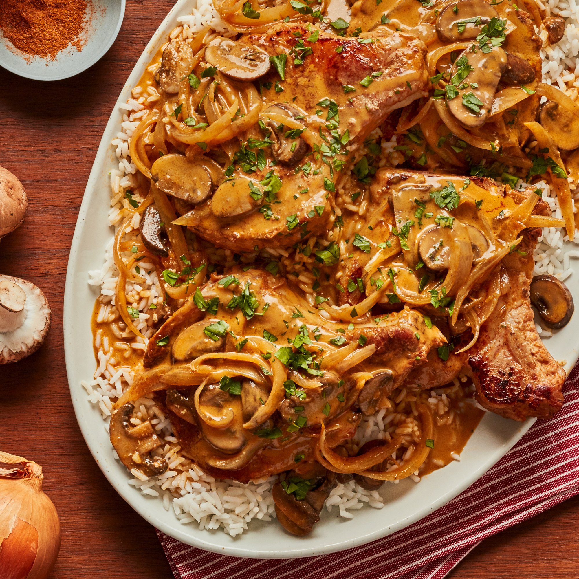 Almost everything campbell's has is condensed. Campbell's condensed golden mushroom soup is a flavorful combination of beef stock, tender mushrooms and savory tomato puree. To reiterate what i have already stated, mix any of those ingredients in small amounts into the condensed soup. Drain grease, add 2 cans golden mushroom soup and simmer on low until pork chops are done. Campbell's® condensed golden mushroom soup is a flavorful combination of beef stock, tender mushrooms and savory tomato puree.